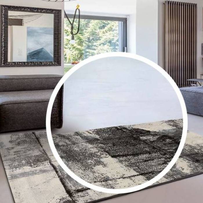 Alfombra para decorar tu salón o tu dormitorio fabricado en textil sintético de 10mm de grosor diseño moderno en colores gris, balnco y negro