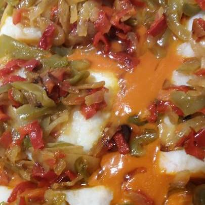 Bacalao con tomate y piperrada