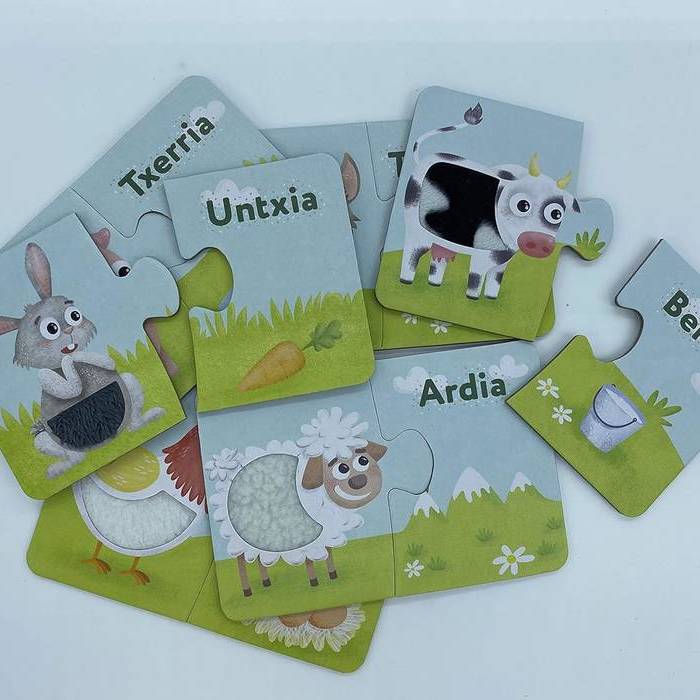 Atractivas piezas de puzle con tela sobre el cuerpo de los animales. A través del tacto y las sensaciones, los niños aprenden sobre los animales de granja y su ortografía. Un juego divertido para que los niños desarrollen habilidades cognitivas a través del aprendizaje sensorial.