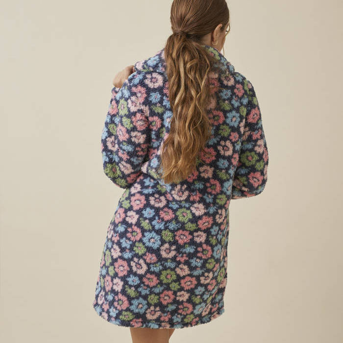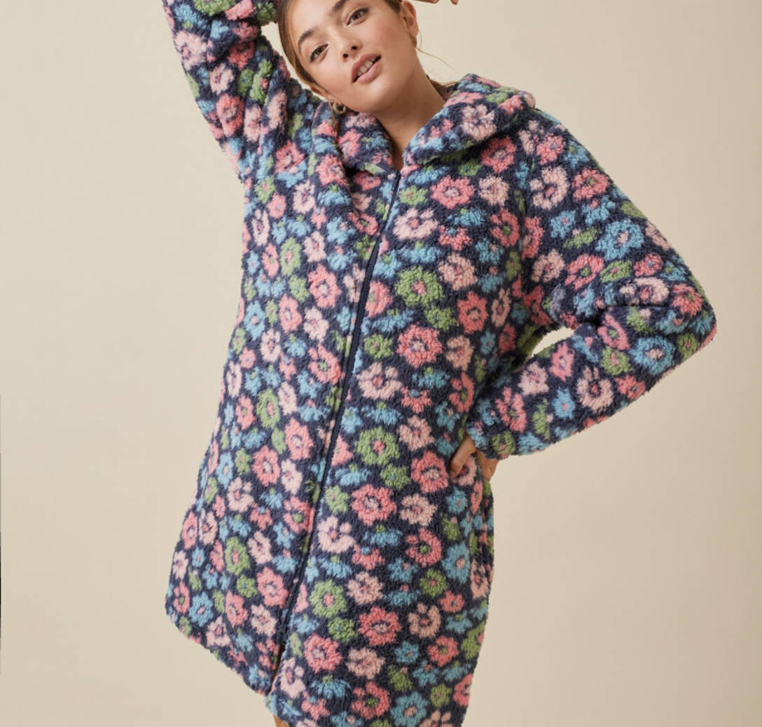 BATA CON CREMALLERA DE DOBLE APERTURA TEJIDO BORREGUITO ESTAMPADO FLORES