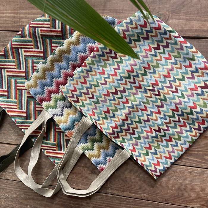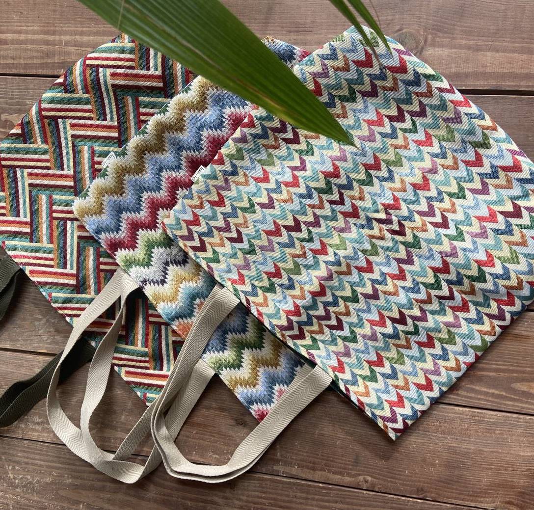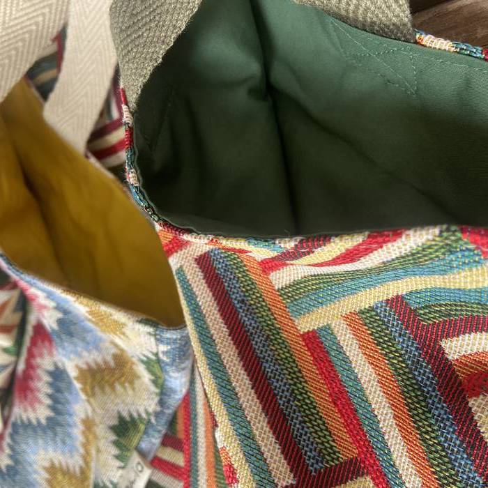 Bolsa de tela reversible hecha a mano en nuestro taller.