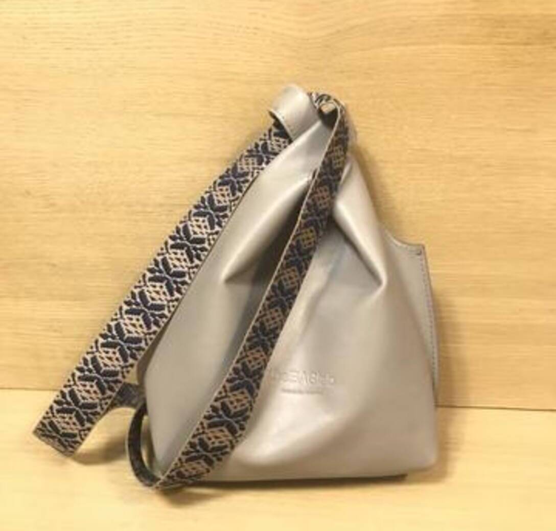 The Julia Bag realizado en piel vacuno, color taupe. Cuenta con cierre de presión, bolsillo interior y tira bandolera bicolor con 2 mosquetones. Lo puedes llevar colgado con la bandolera o de mano sin ella.