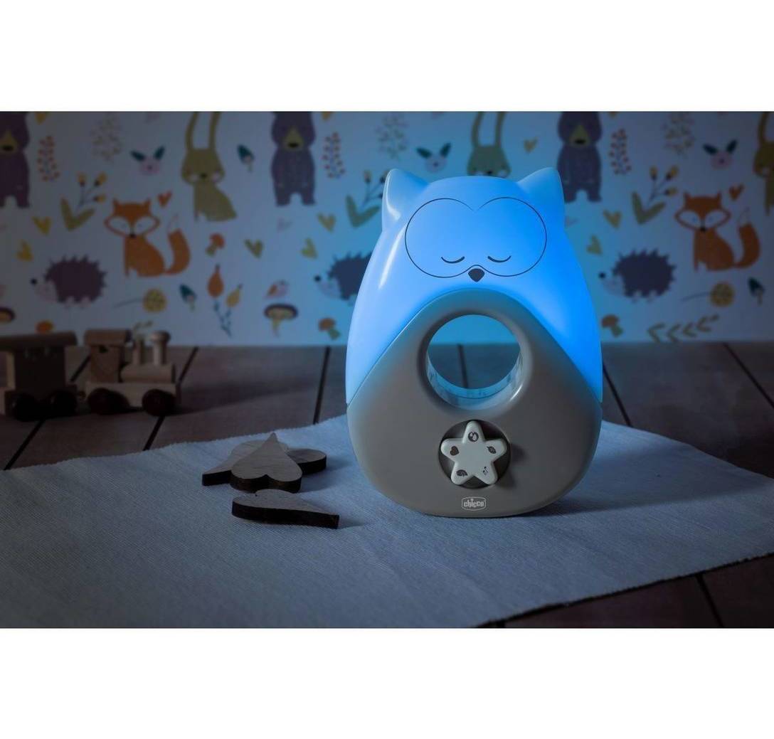 Chicco - Luz Nocturna Búho Mágico es un producto elaborado para actuar como lámpara de mesita de noche, que le hace compañía al bebé y lo distrae con sus múltiples efectos. Es perfecto para envolver al bebé en un ambiente tranquilo y relajante con 5 luces distintas, melodías y ruidos blancos. Tiene un hermoso diseño de búho mágico que se balancea cuando está encendido.