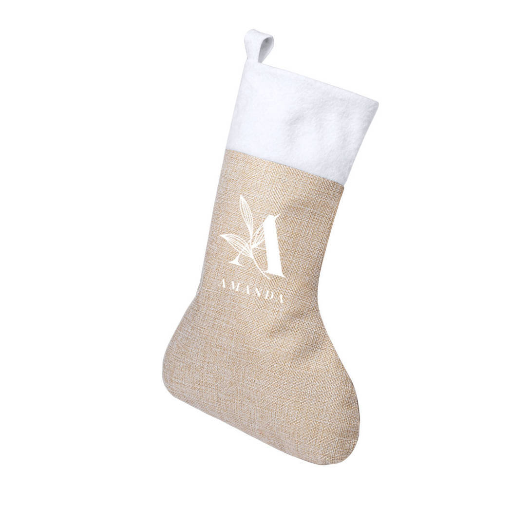 Calcetín navideño de gran capacidad en tradicional combinación de colores navideños y con cinta para colgar.