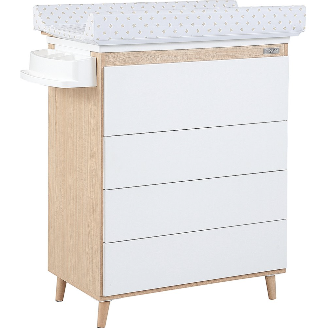 Dispone de 4 amplios cajones con sistema Soft Closing, cubeta, jabonera y un cambiador con tapizado de plástico que, gracias a un sencillo mecanismo se puede extraer para convertir la bañera en una bonita y práctica cómoda.
