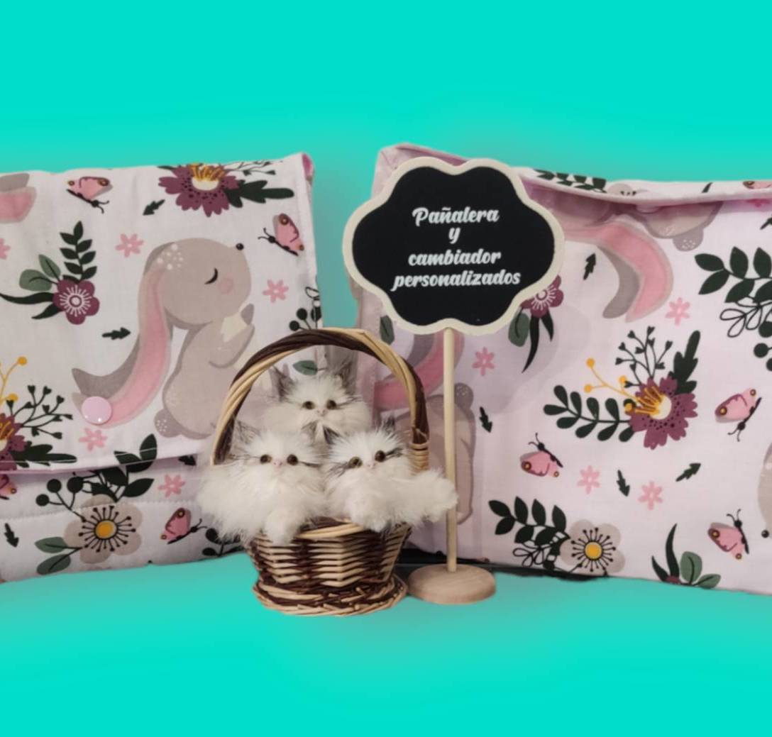 Cambiador de viaje acolchado. Elaborado artesanalmente en algodón con certificado OEKO-TEX. Zona para el pañal plastificada, facilitando la limpieza ante imprevistos.