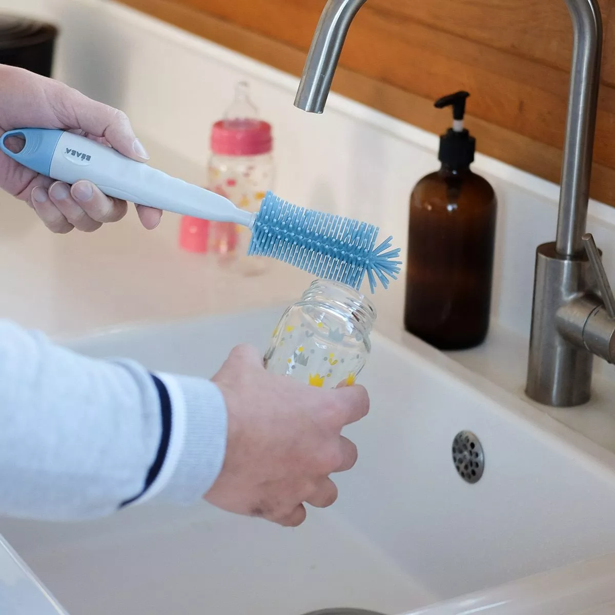 Este cepillo es ideal para limpiar biberones, chupetes, tetinas y mordedores. Tiene una forma redonda para facilitar la limpieza de los biberones.