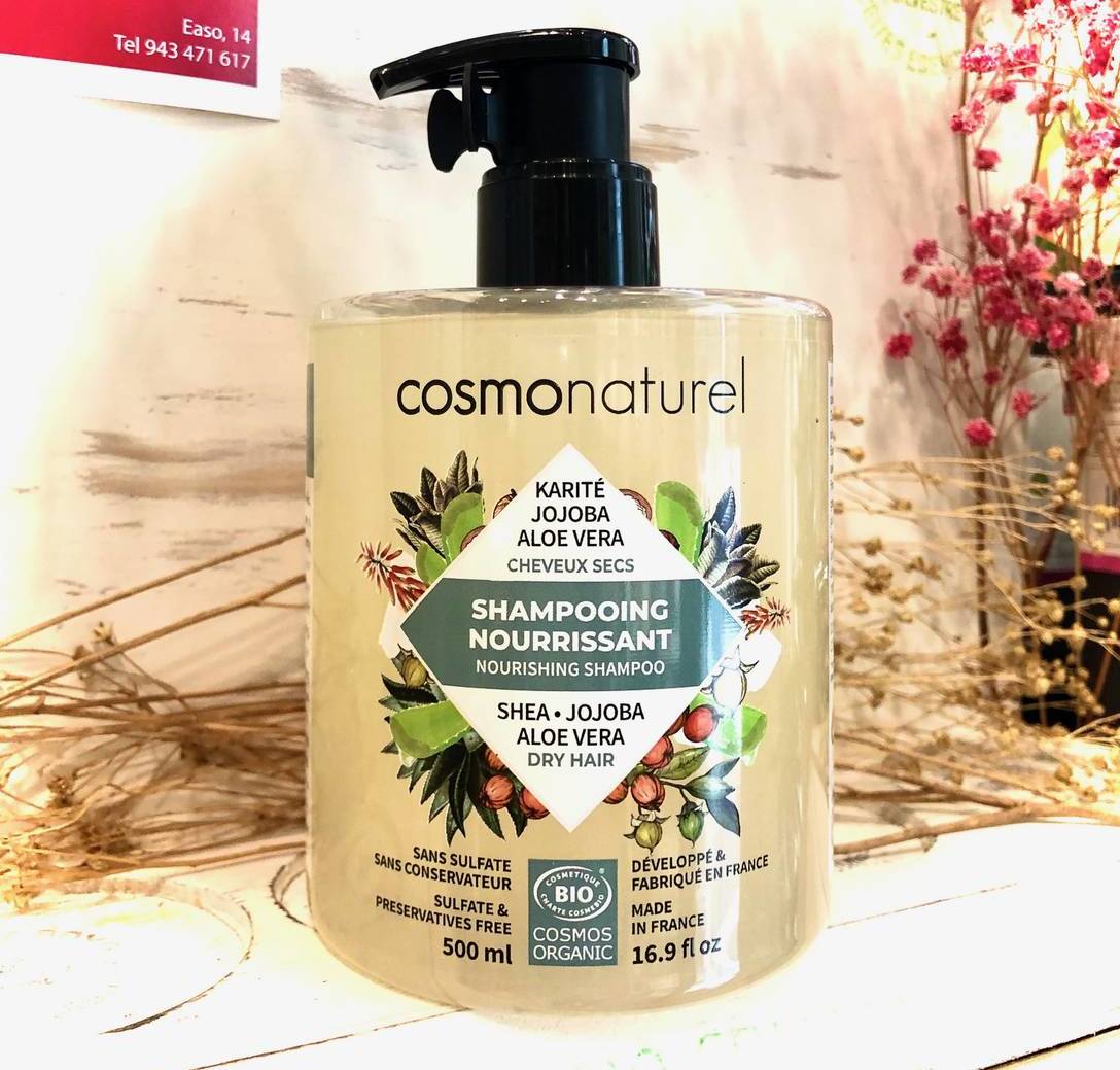 Champú nutritivo cabellos secos con karité, jojoba y aloe vera.