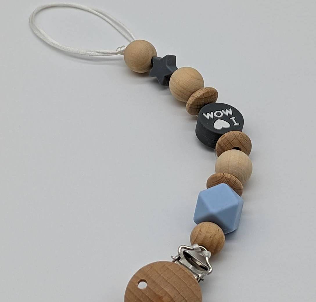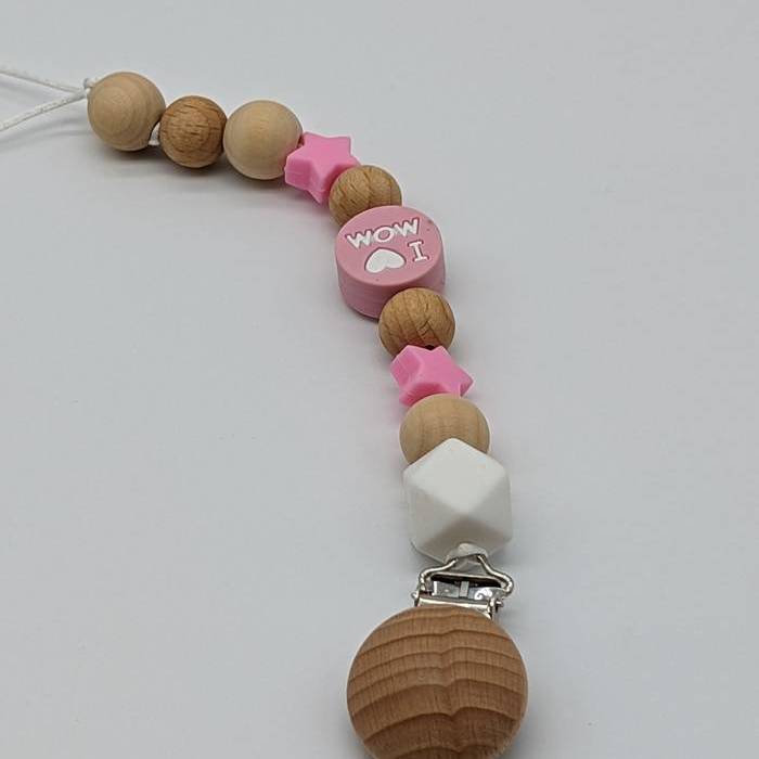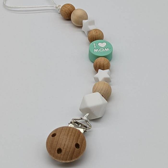 Chupetero de abalorios de silicona, para no perder el chupete de tu bebé. Silicona alimentaria.