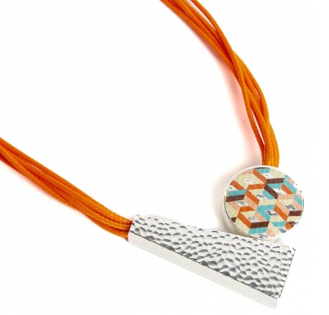 Collar corto de cordón encerado con piezas marneticas de efecto martillado y redonda decorada .