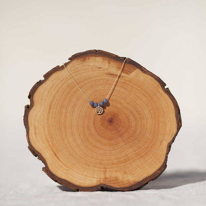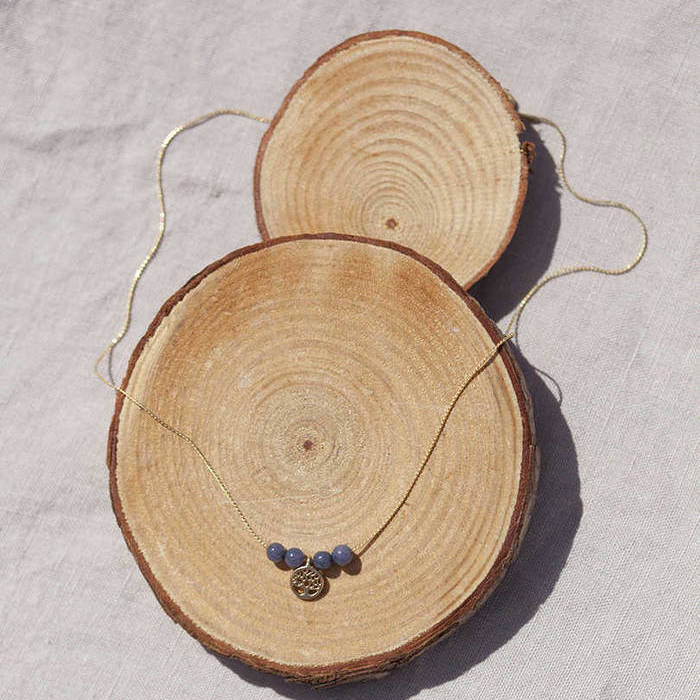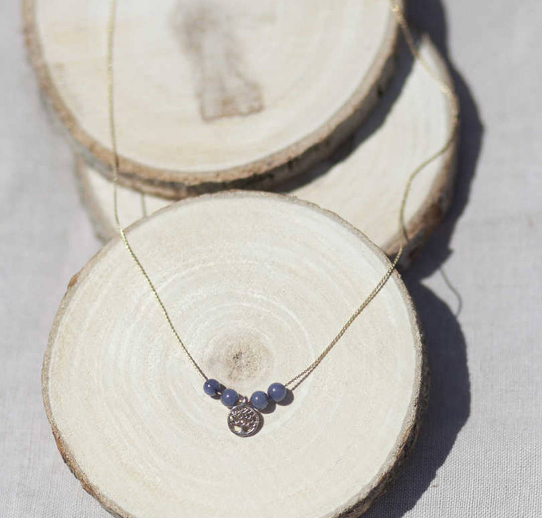 Un collar que rinde homenaje a la vida. En tonos mineral gris.