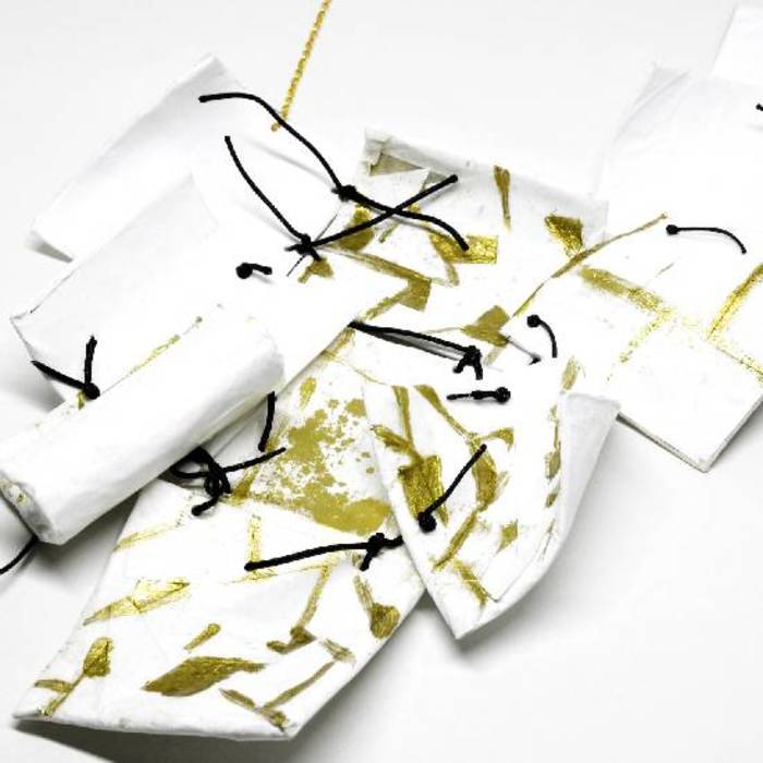 Pulsera realizada con elementos de papel color gris y plata bañada oro