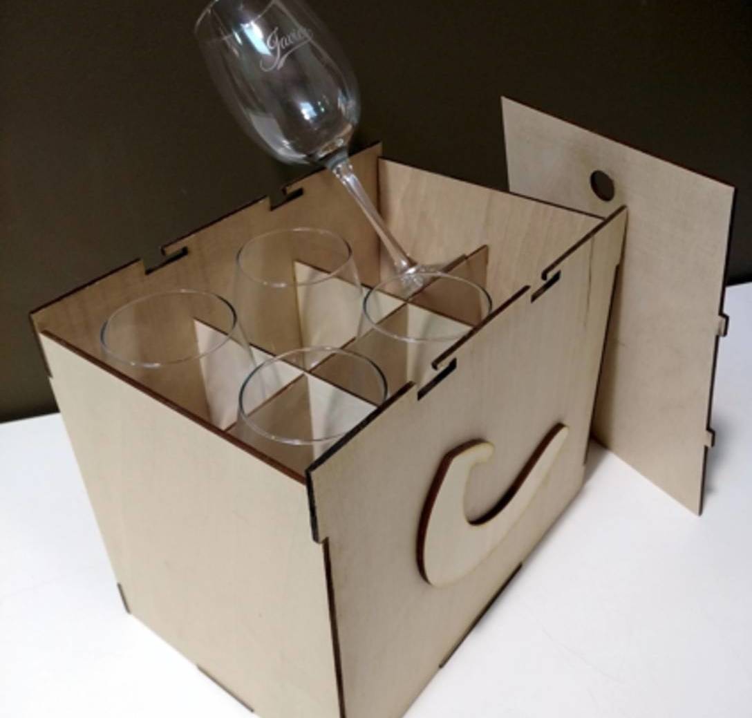 Copas de vino de cristal con caja de madera