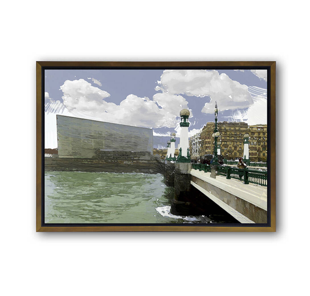 Cuadro técnica GIGLEE, TINTA u.v. sobre lienzo "canvas" , marco tipo caja americana oro y negro,