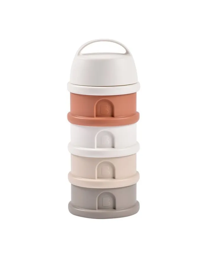 El Dosificador de Leche Beaba – 4 Compartimentos – Terracotta es una solución práctica y segura para transportar dosis de leche en polvo o snacks para tu bebé de manera organizada.