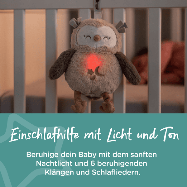 Apto desde el nacimiento, Ollie el Búho Incorpora seis sonidos reconfortantes con volumen ajustable, que incluyen ruido blanco, lluvia suave, latidos de corazón y tres nanas clásicas.