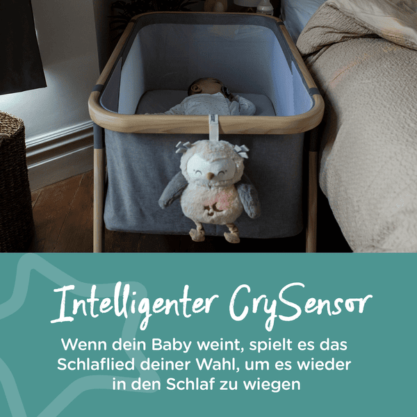 El Grofriend Ollie el Búho de Tommee Tippee es un suave y adorable peluche concebido para ayudar a los bebés y a sus papás a dormir toda la noche. Su suave luz nocturna y sus relajantes sonidos ayudan al bebé a conciliar el sueño, mientras que el sensor de llanto inteligente CrySensor favorece que vuelva a dormirse si empieza a llorar.