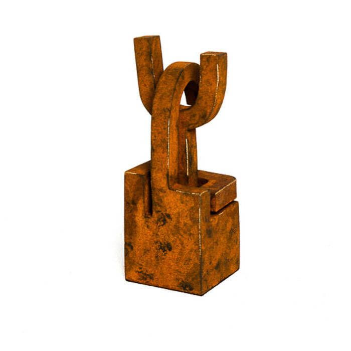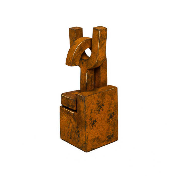 Materiales: Bronce Oxidado. La escultura está realizada con una capa de bronce sobre fundición en frío de cobre con base de grafito y calcita con terminaciones pulidas.