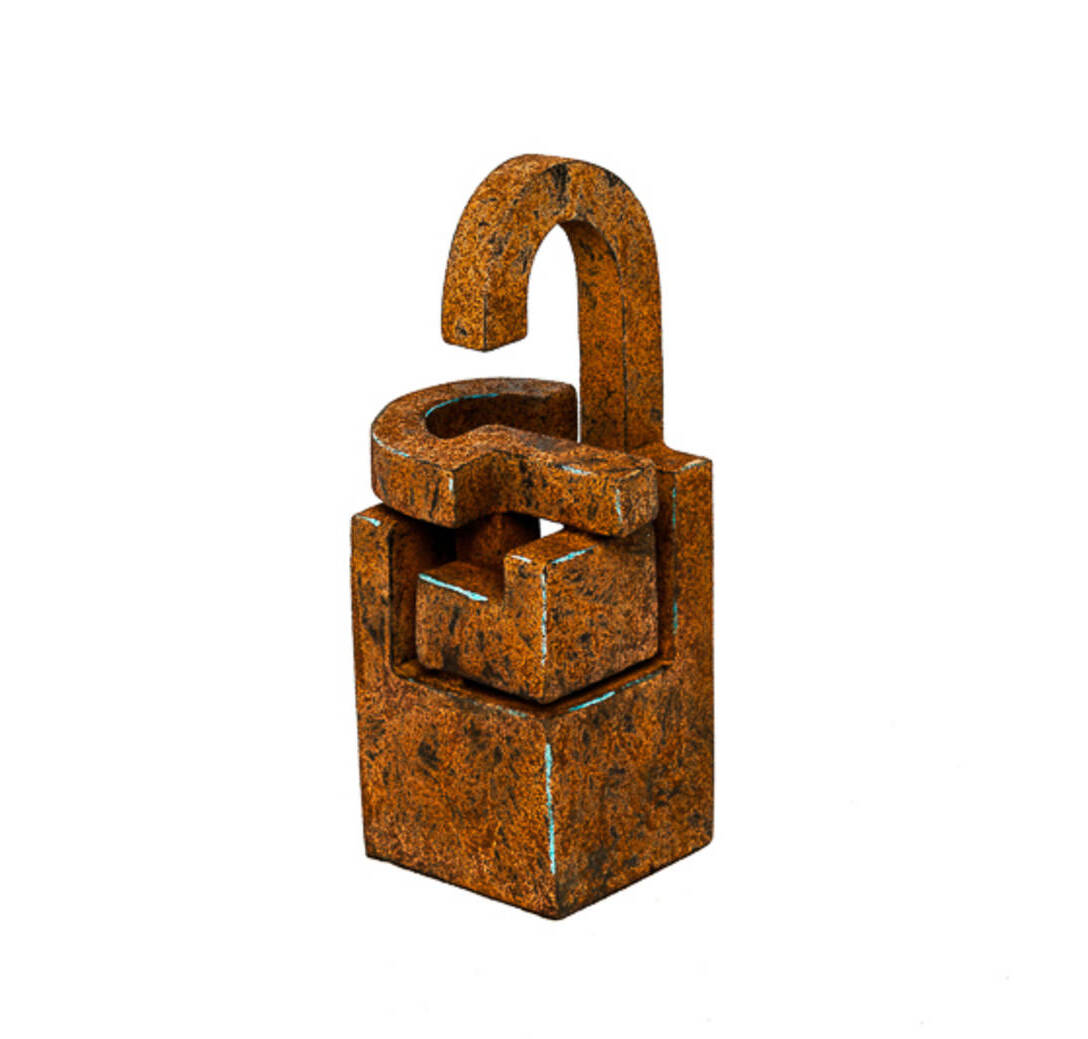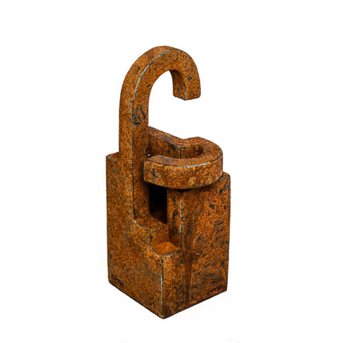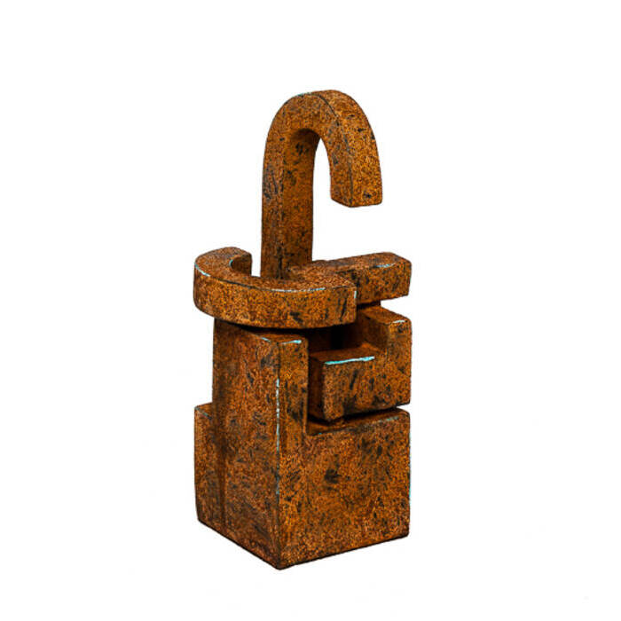 Materiales: Bronce Oxidado. La escultura está realizada con una capa de bronce sobre fundición en frío de cobre con base de grafito y calcita con terminaciones pulidas.