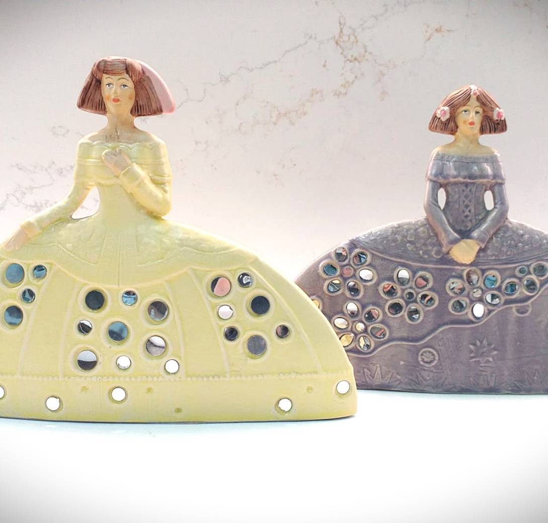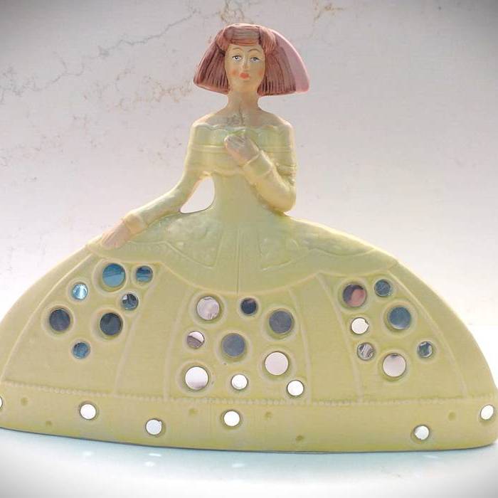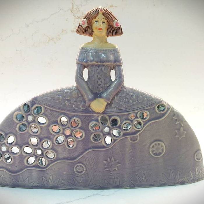 FIGURA DE MENINA ELABORADA DE RESINA. DISPONIBLE EN LILA Y EN AMARILLO