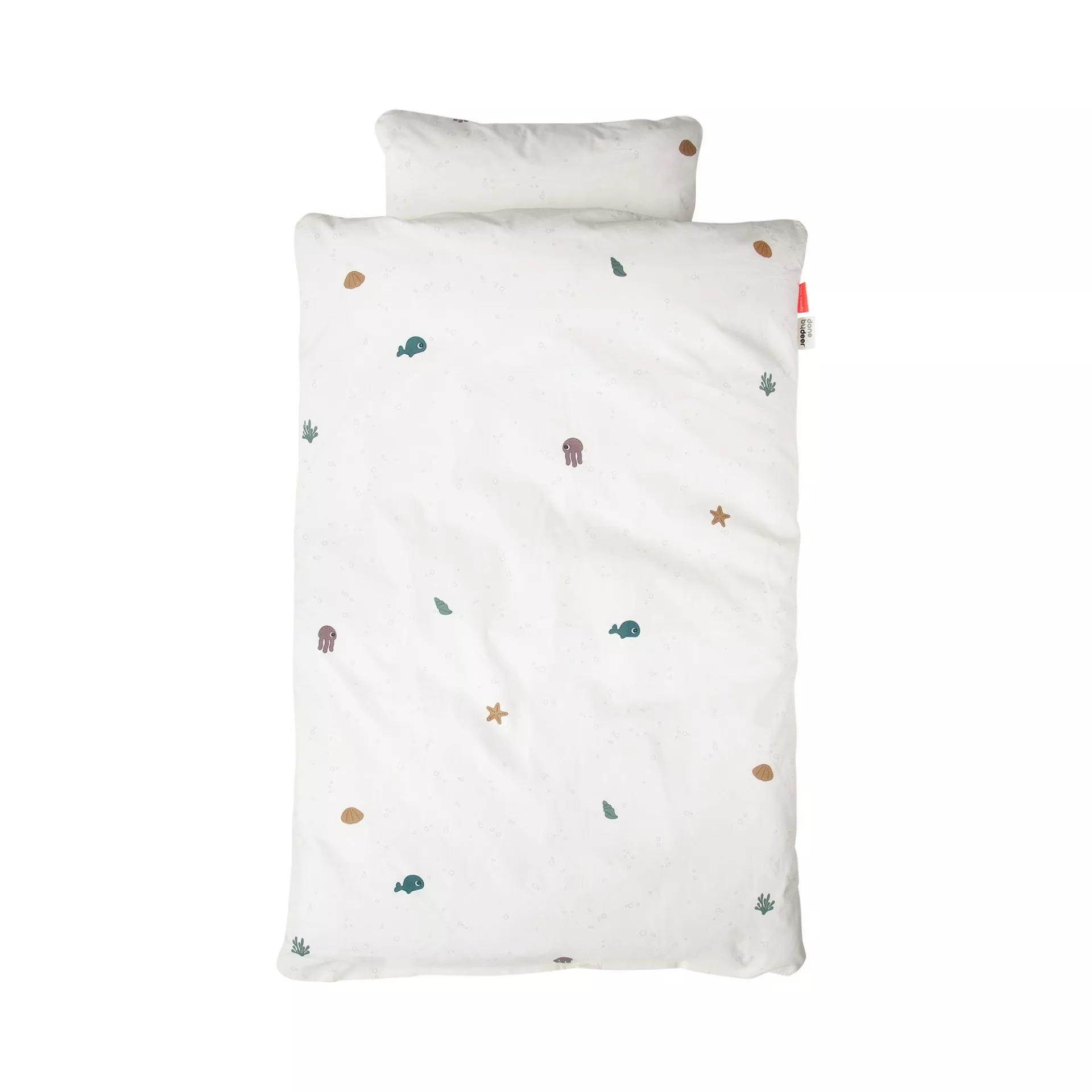 La suave ropa de cama de algodón orgánico proporcionará un ambiente cómodo para dormir a los más pequeños. El lindo estampado de Sea Friends neutral en cuanto al género agregará un ambiente divertido a cualquier cuarto de niños o cuarto de niños.