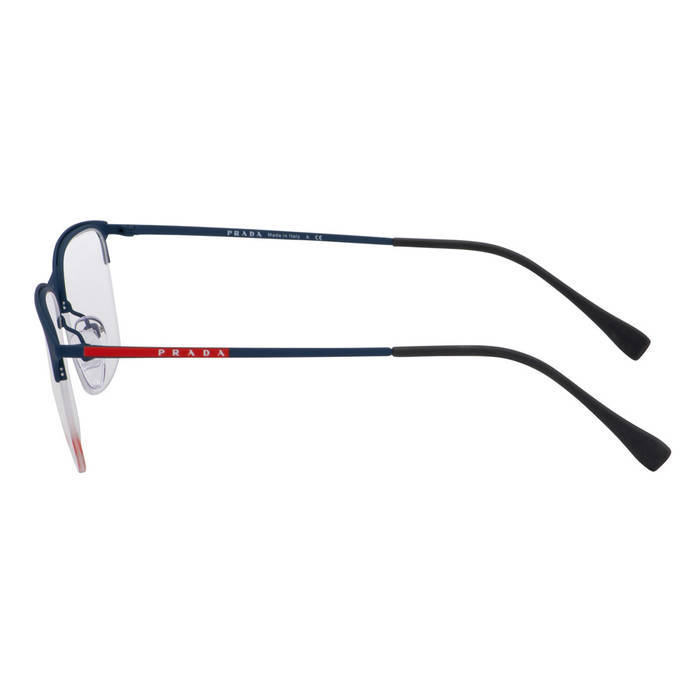 Montura metálica parcialmente libre en la zona baja. La linea joven de PRADA fabrica gafas atrevidas y coloridas que pueden llevarse en cualquier situación.