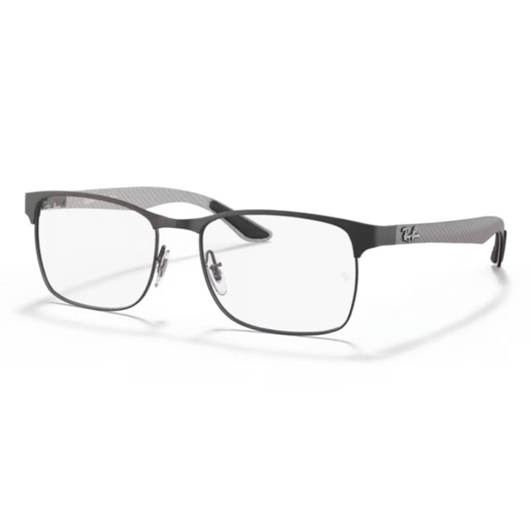 Gafa de metal rectangular, ligera y muy anatómica. Con varillas de fibra de carbono. Se adapta muy bien al contorno de la cabeza.