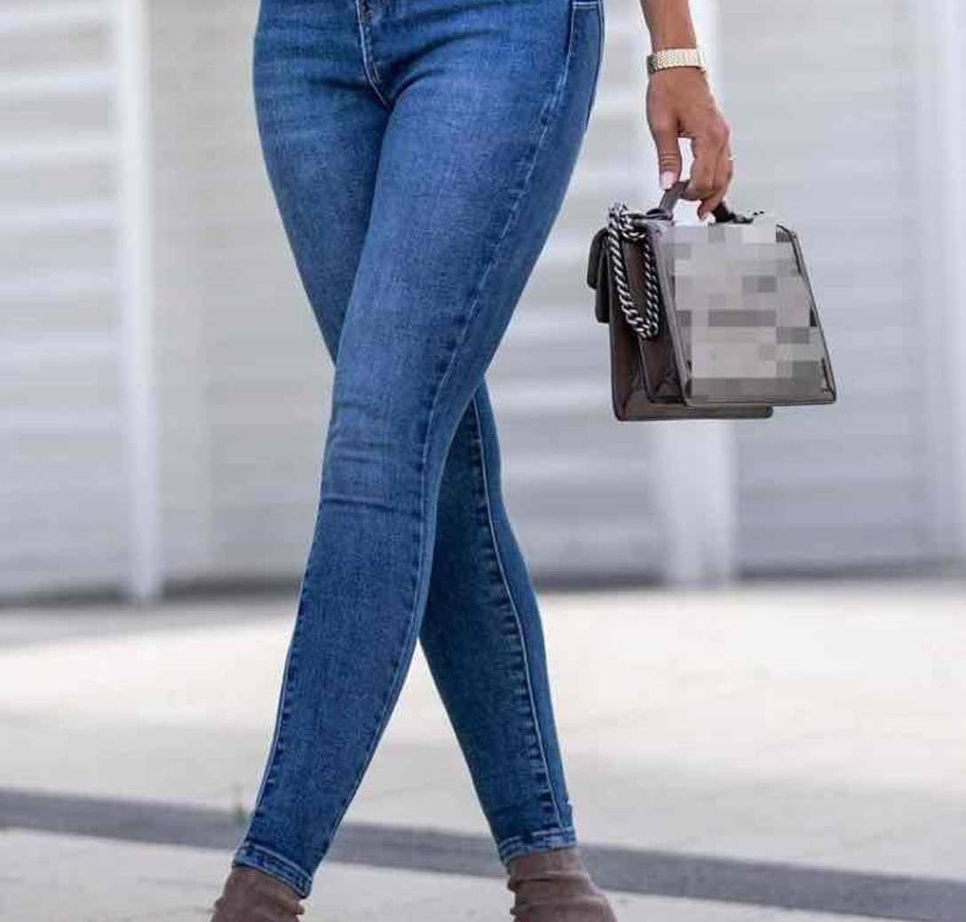 Jeans skinny con botones y tiro alto. Muy confortable, ideal para un look desenfadado.