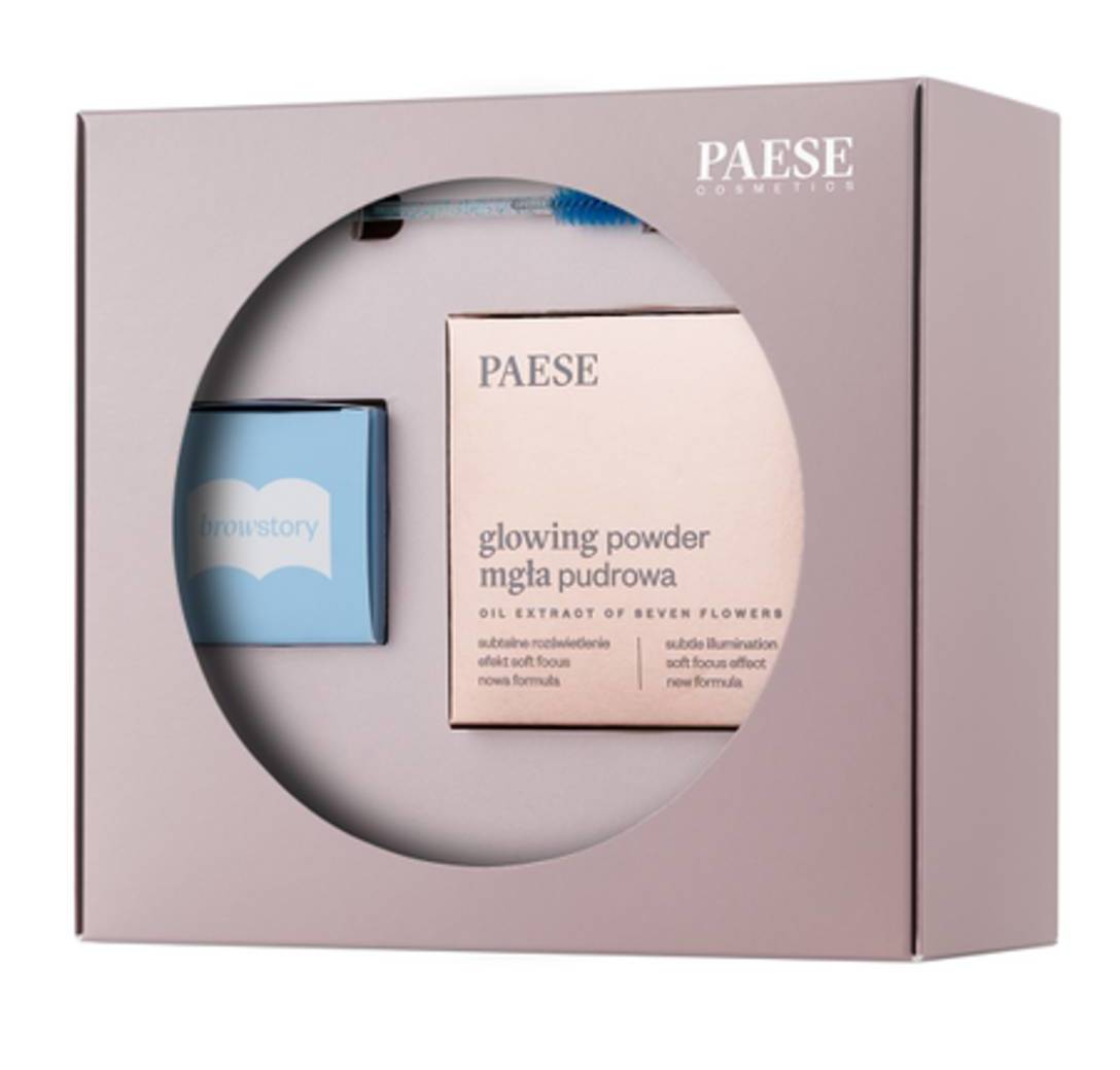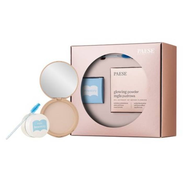 Set de maquillaje que incluye un jabón para cejas y un iluminating powder