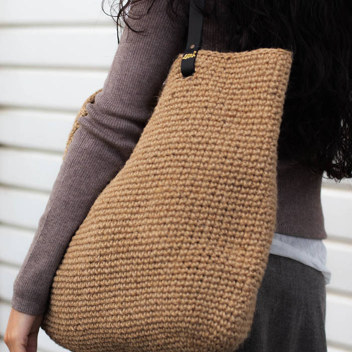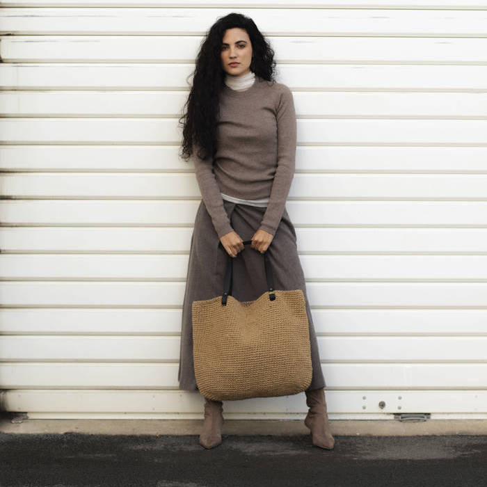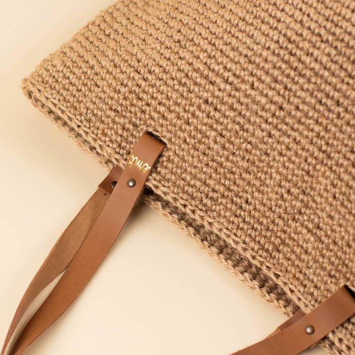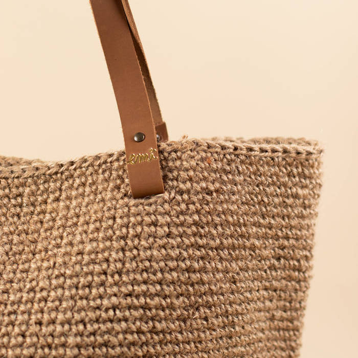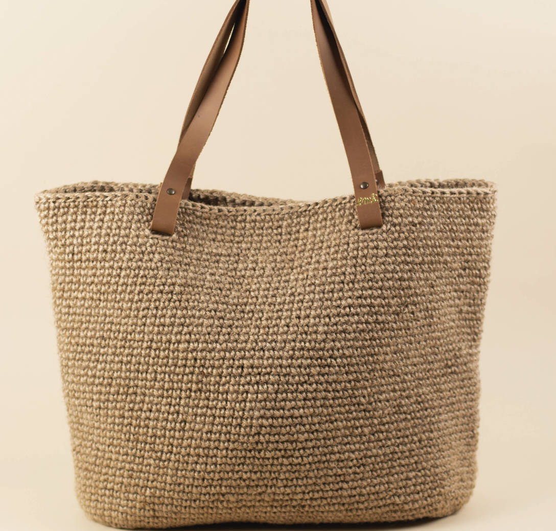 Bolso modelo GORKA de yute natural tejido a mano, asas de piel.