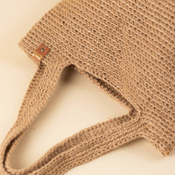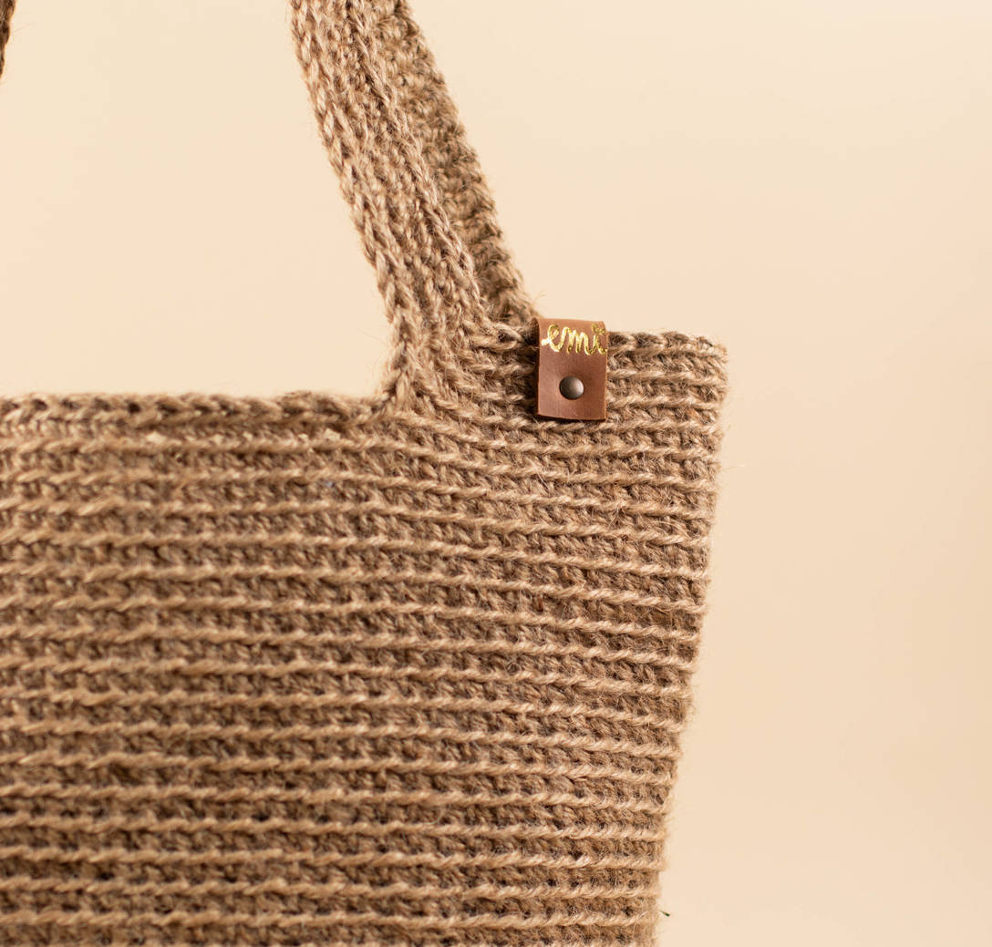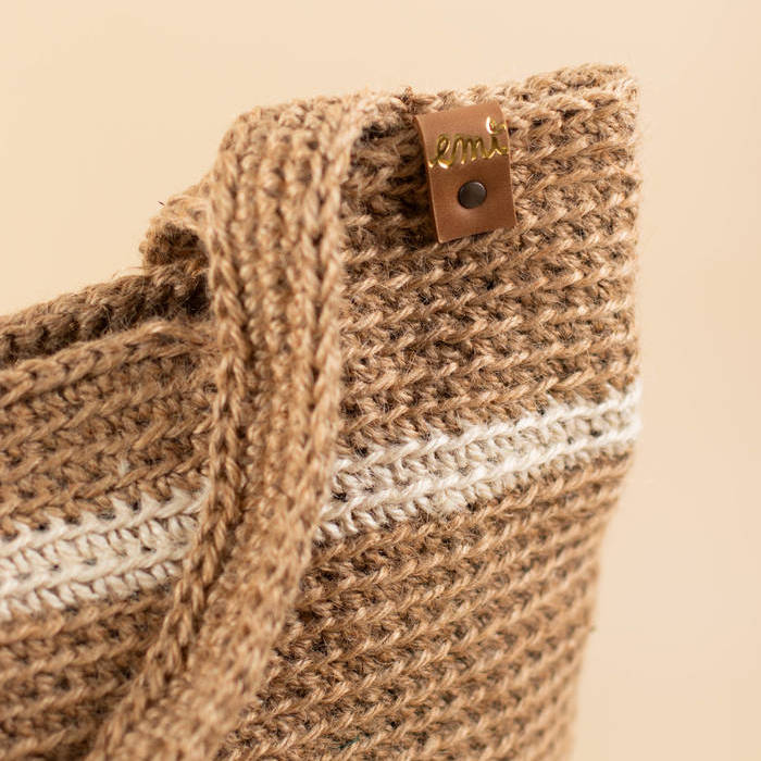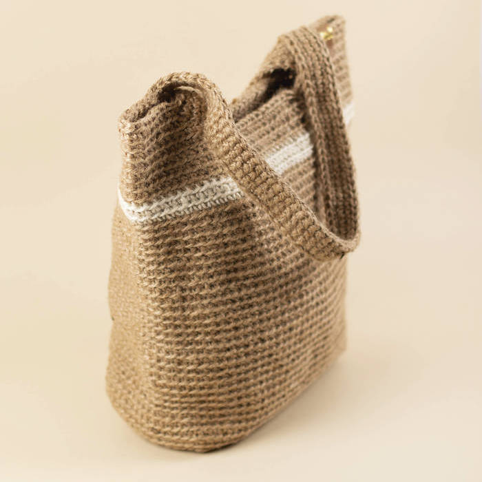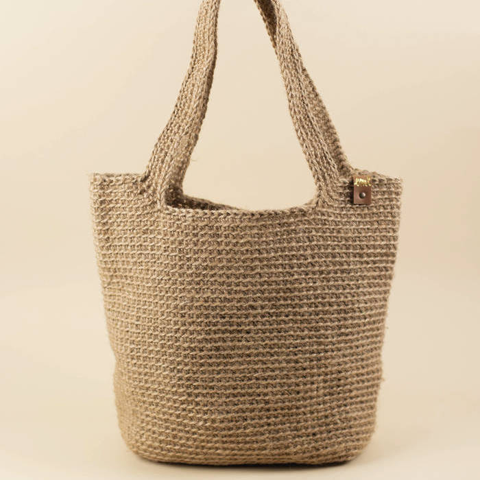 Una pieza única, tejida a ganchillo con yute natural.