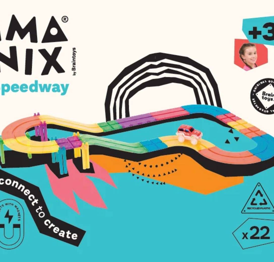 Sumérgete en el emocionante mundo de la construcción magnética con el set de Imanix de Braintoys, que consta de 22 piezas diseñadas para crear increíbles pistas de carreras y mucho más.