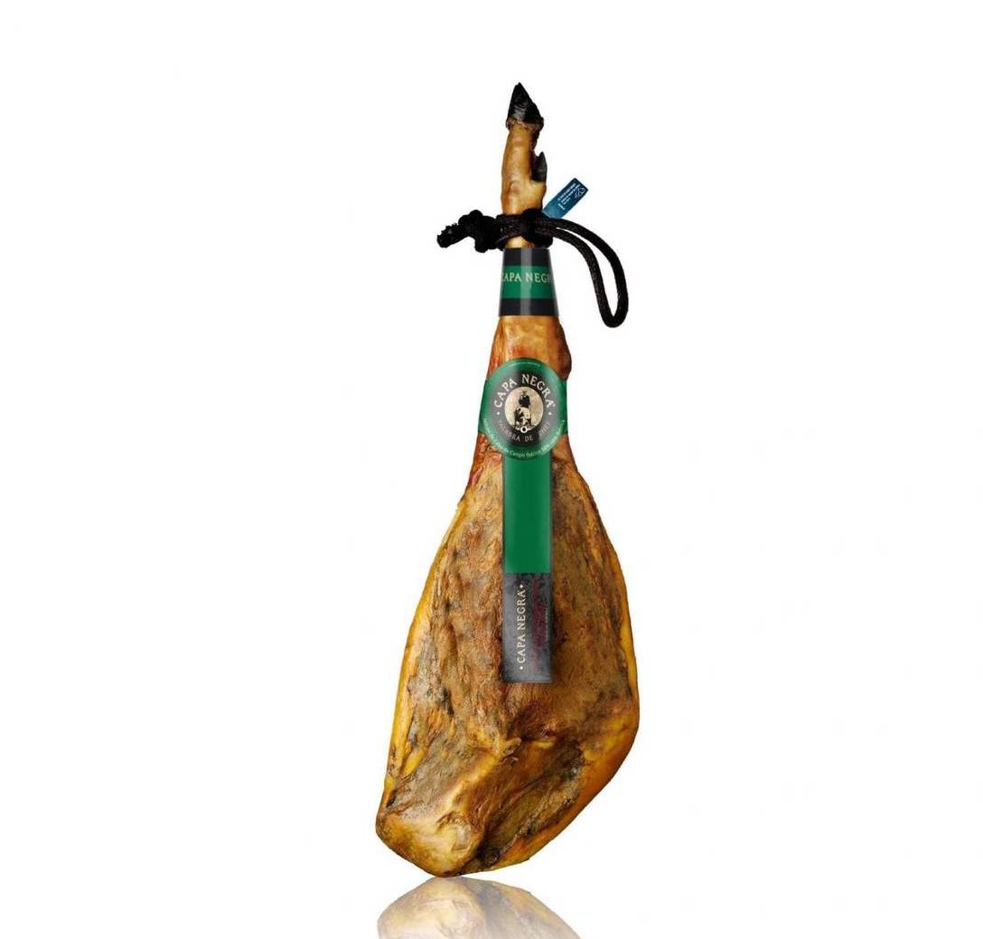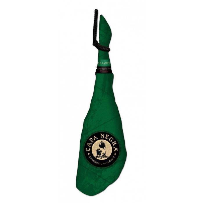 La compañía Consorcio de Jabugo, ubicada en la provincia de Huelva (Andalucía), elabora este buenísimo jamón de cebo de campo con un 50% de raza ibérica, entero con hueso y con un peso comprendido entre 7 y 7,5 Kg, bajo la marca Capa Negra.