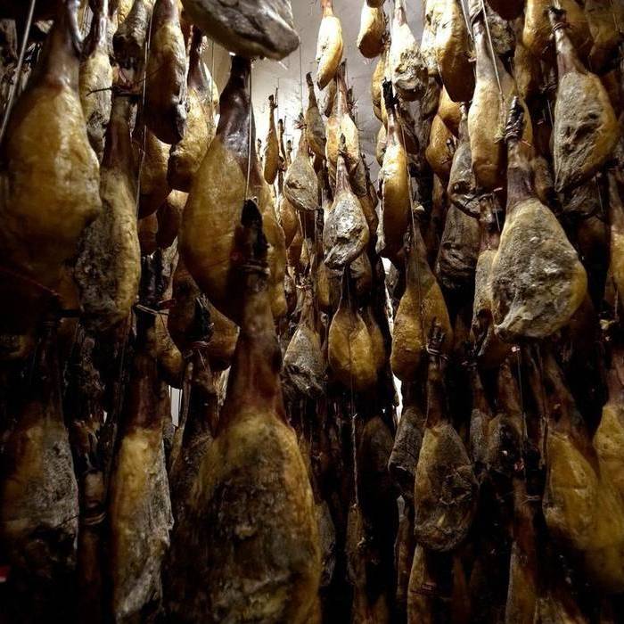 Este jamón proviene de cerdos ibéricos campeados en las praderas del sur-oeste de la Península Ibérica, con una alimentación a base de piensos y de hierbas naturales.