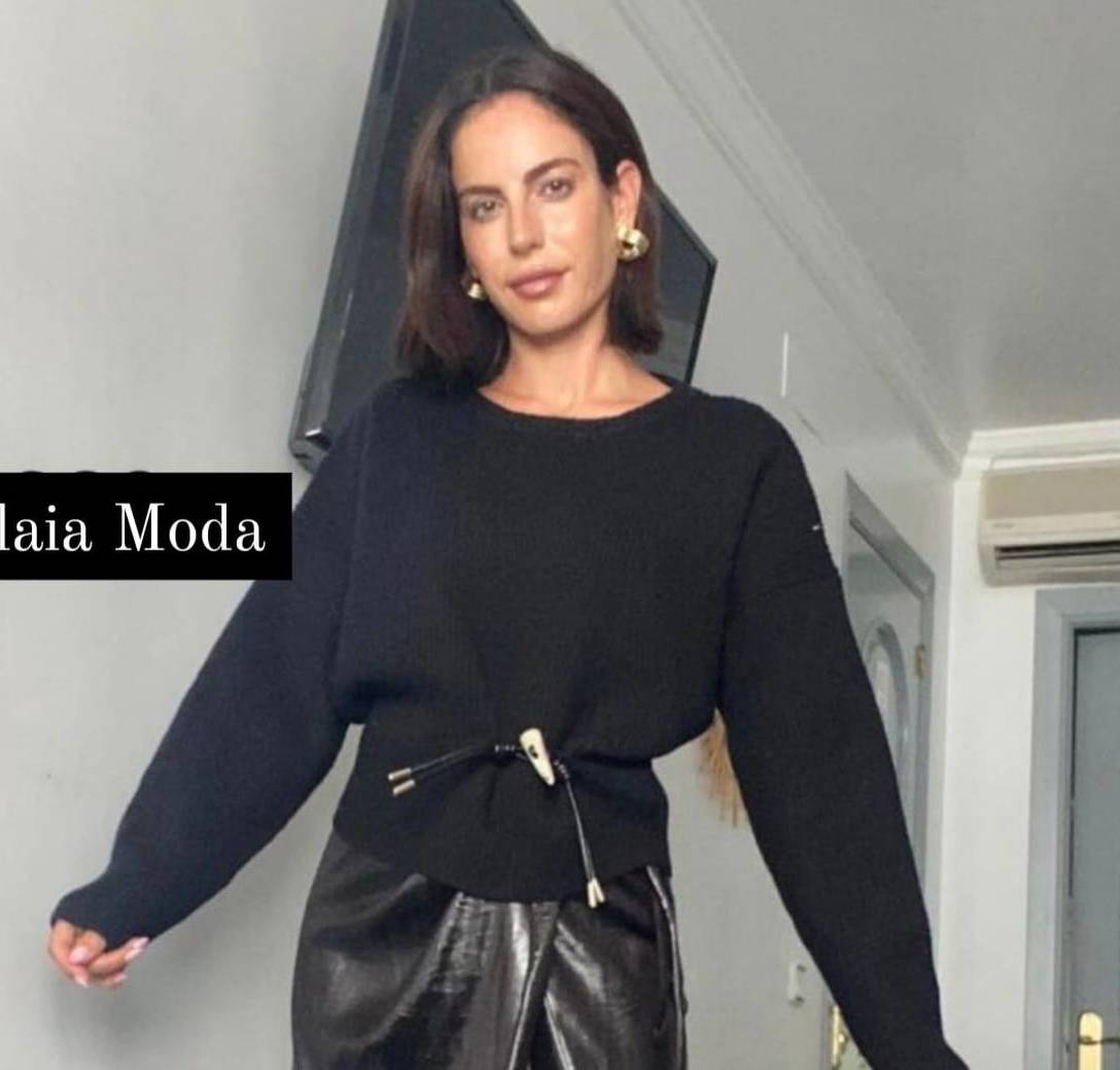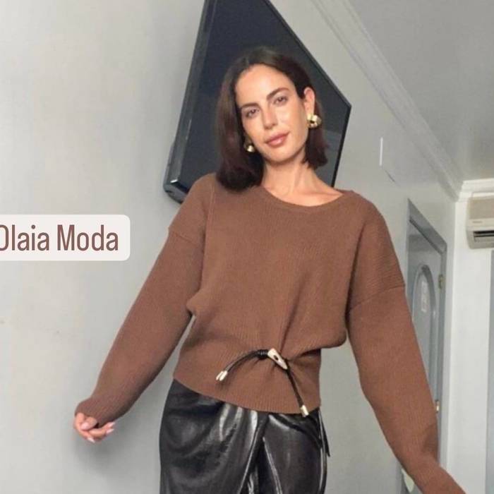 Jersey detalle símil cinturón con cuerno de asta . En dos tonos marrón y negro .