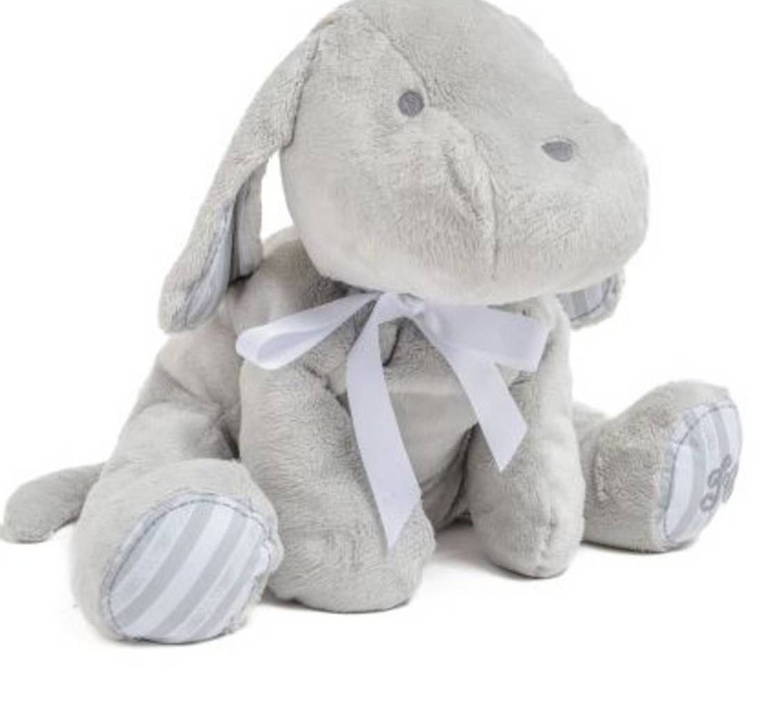 Lucien, el perro de color gris. Extremadamente suave, la felpa está adornada con tela. Un cachorrito tierno al que le encanta guiñar. El mejor amigo de todos, acompañará el día a día de los más pequeños y de los más mayores.