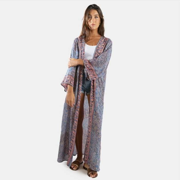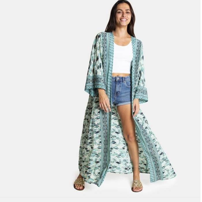 Kimonos estampados en diversos colores , amplios talla unica , manga 3/4 en poliéster . Ideales tanto para un look playero como para vestir .