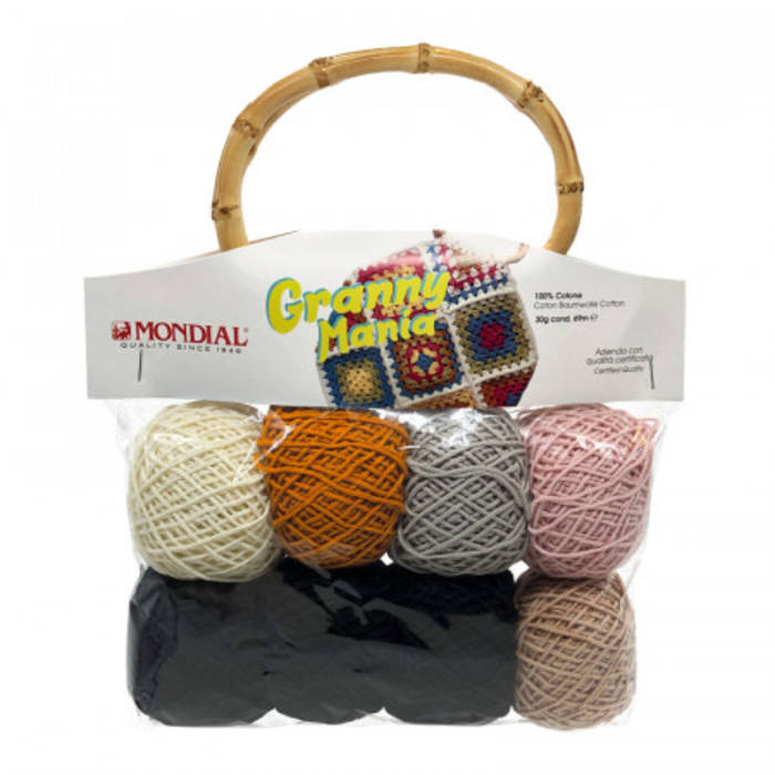 Granny mania, un kit completo, presentado en 6 combinaciones de colores, ¡que te permite crear tu propio bolso mosaico!