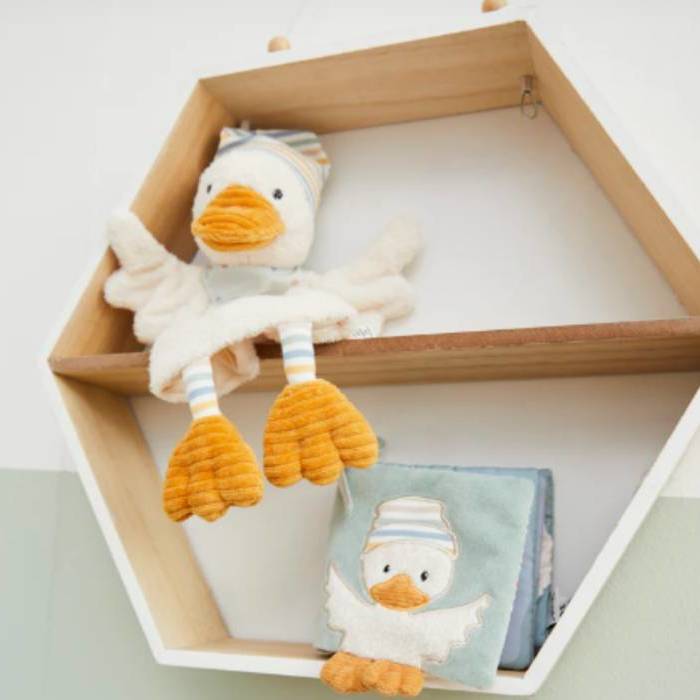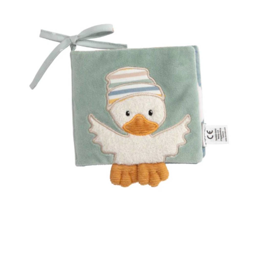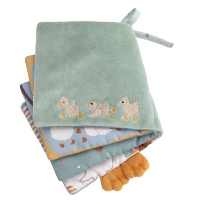Libro de peluche suave con chirriador y papel arrugado.