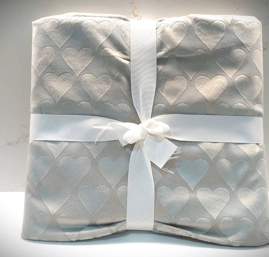 MANTA SOFA GOTEBORG COLOR GRIS PERLA CON ESTAMPADO DE CORAZONES 130 X 170