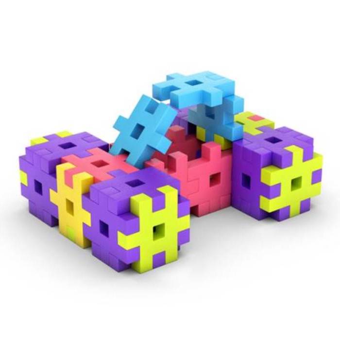 Piezas semi-rígidas que pueden conectarse y desconectarse muy fácilmente promoviendo el juego y diseño libre. Con un formato similar a las piezas de un puzle, permite crear figuras en diferentes dimensiones.