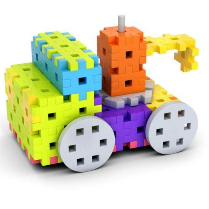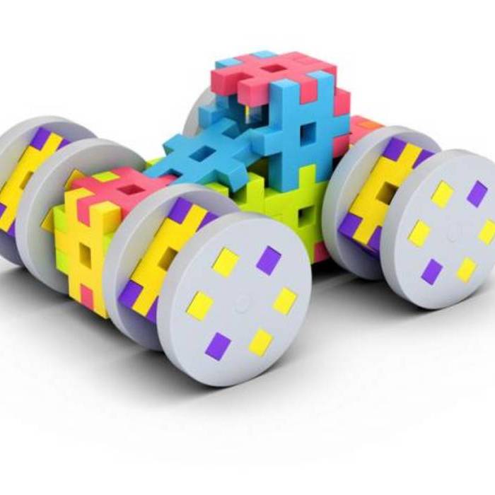Piezas semi-rígidas que pueden conectarse y desconectarse muy fácilmente promoviendo el juego y diseño libre. Con un formato similar a las piezas de un puzle, permite crear figuras en diferentes dimensiones.