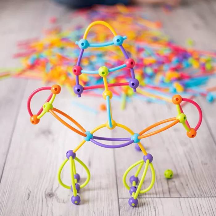 Piezas semi-rígidas que pueden conectarse y desconectarse muy fácilmente promoviendo el juego y diseño libre. Con un formato similar a las piezas de un puzle, permite crear figuras en diferentes dimensiones.