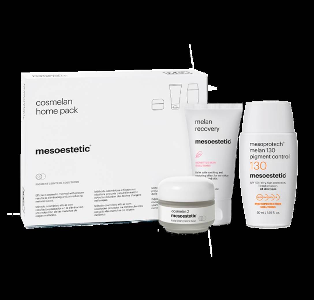 Pack domiciliario del método cosmelan®. Contiene los productos para seguir la pauta domiciliaria del método profesional cosmelan® y completar la acción despigmentante en la eliminación y/o reducción de las manchas de origen melánico. Atenúa las manchas de forma contínua y regula la sobreproducción de melanina para evitar su reaparición a largo plazo. El pack contiene: