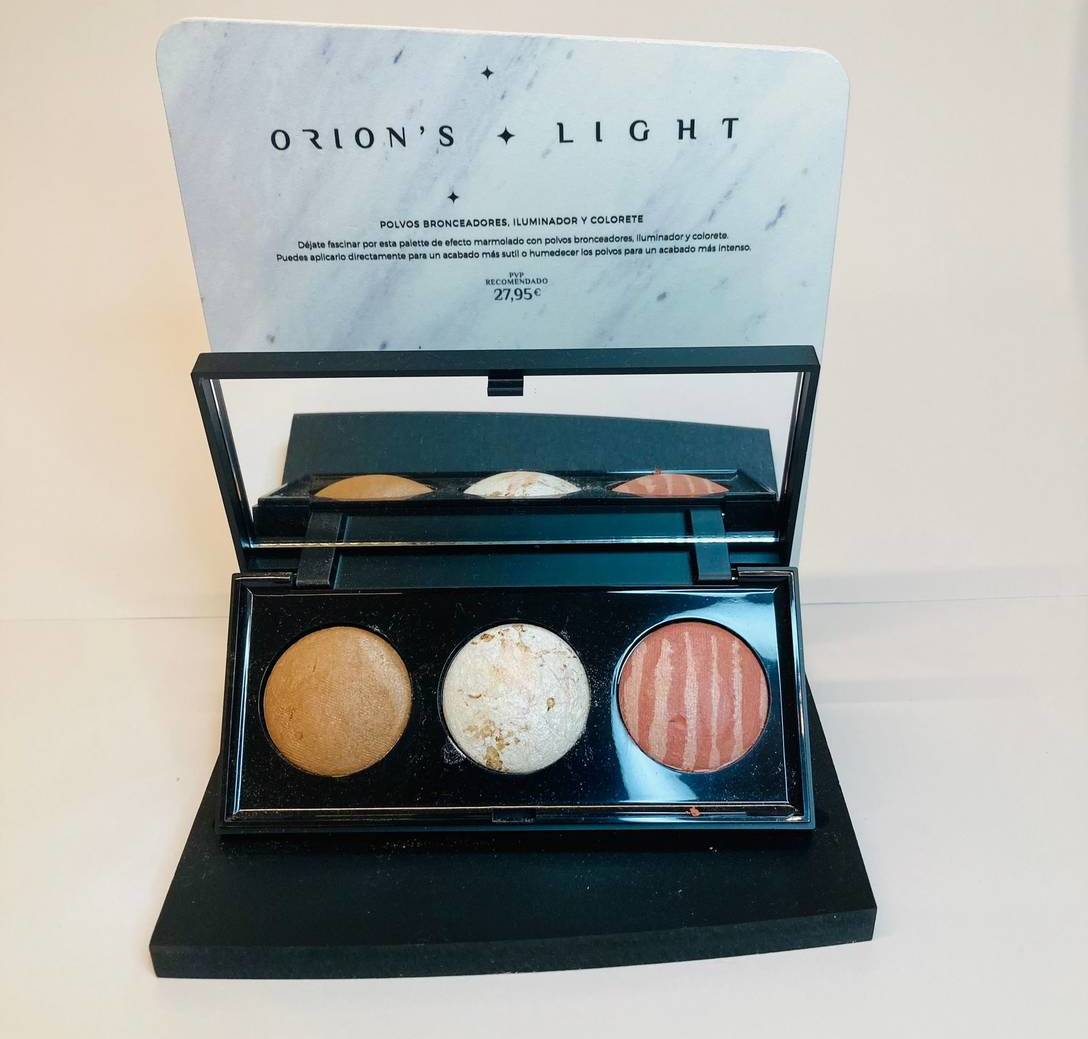 Polvos bronceadores, iluminador y colorete.