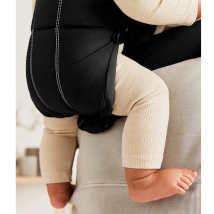 Las suaves telas se adaptan a la forma de la espalda, las piernas y las caderas del bebé, proporcionándole un apoyo óptimo. A través de la tela, los padres pueden sentir la posición del bebé y la curva natural de su espalda. La Mochila Porta Bebé Mini tiene además un soporte para la cabeza firme y ajustable.