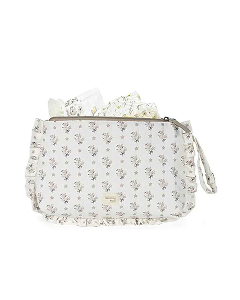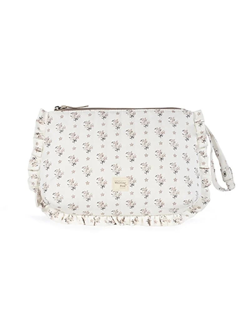 El Neceser Botton de Walking Mum es práctico, resistente y con un diseño floral encantador. Ideal para llevar todos los productos de aseo del bebé, cuenta con un amplio compartimento con cremallera y una asa para colgar del carrito o llevar en la muñeca. Fabricado en algodón plastificado, es fácil de limpiar y perfecto para usar en casa o fuera.