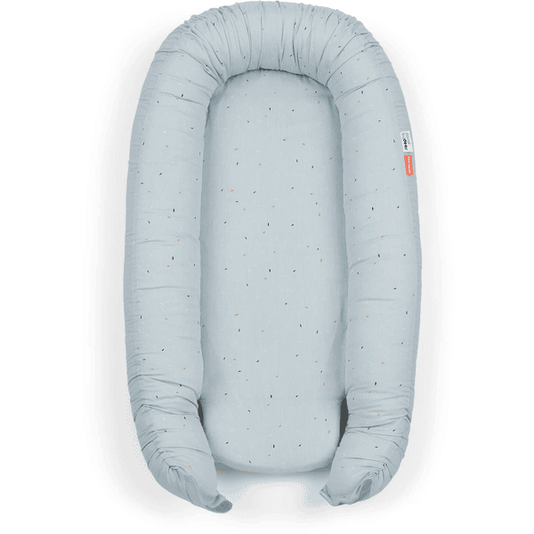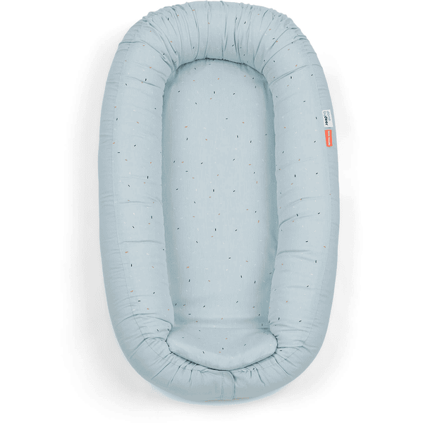 - Nido de colecho color azul pastel, con un delicado estampado de confetti.