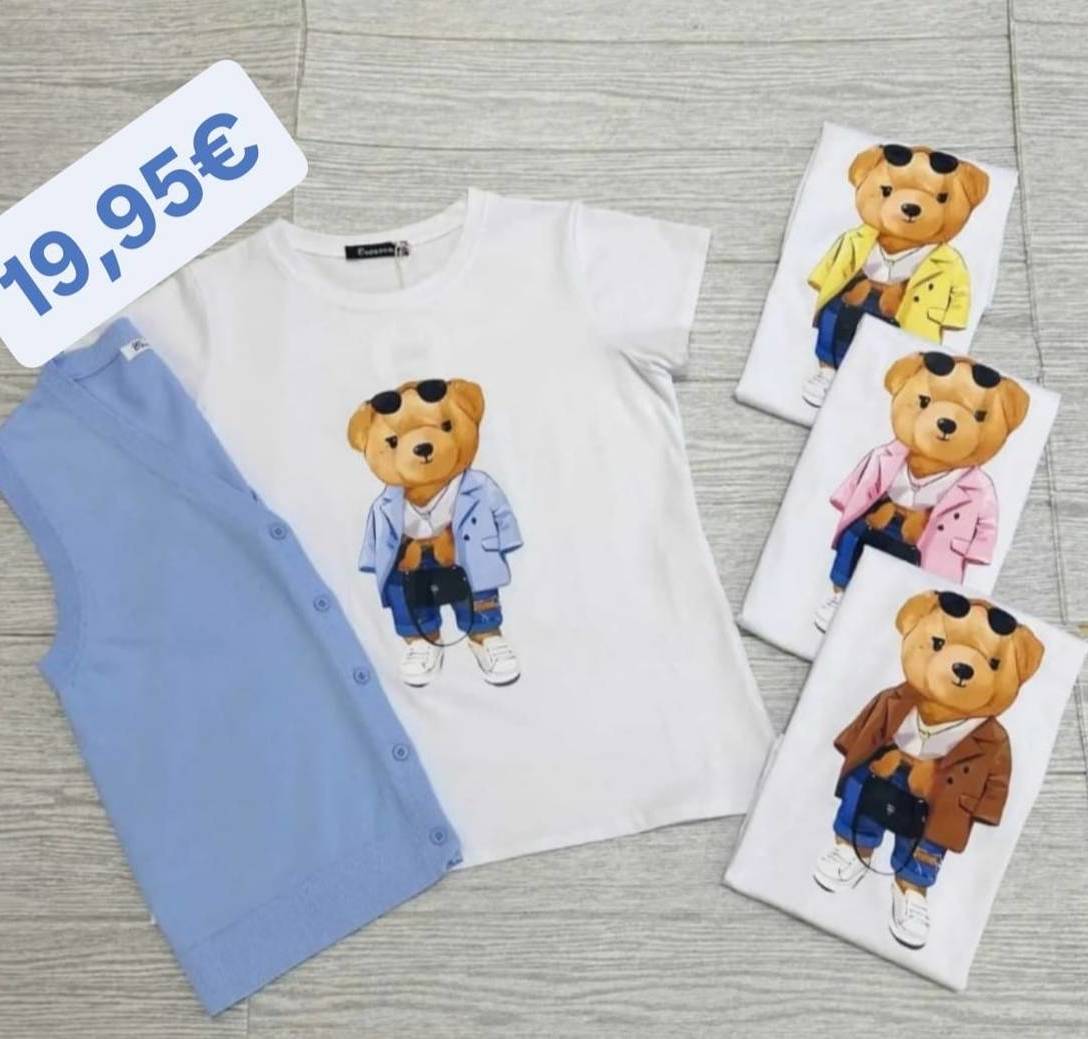 Camiseta en 90algodon 5 elastan con dibujo de osito con americana de diferentes colores .