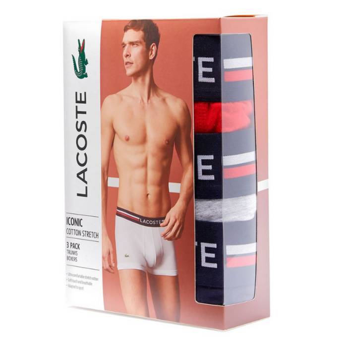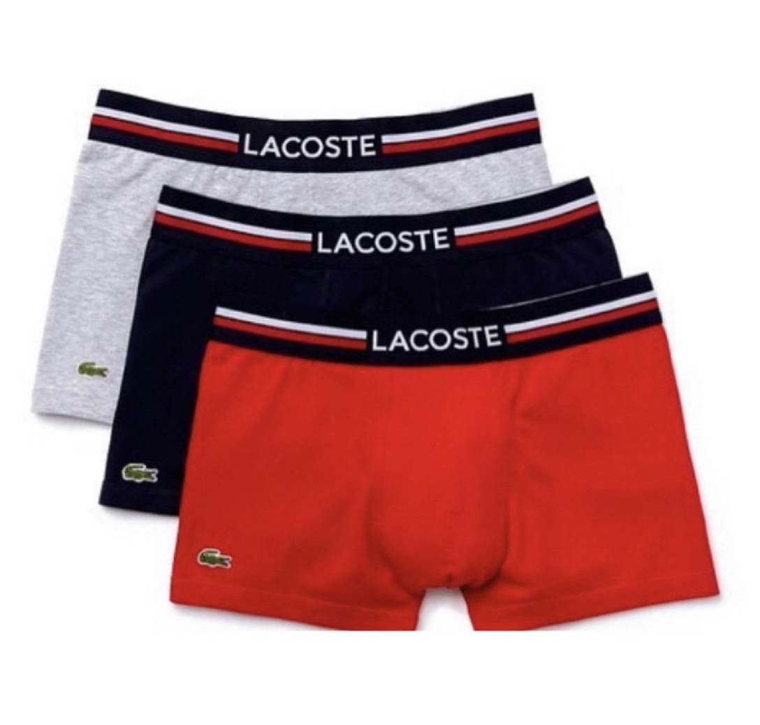Preciosos Boxer de Lacoste, complemento confeccionado en algodón stretch súper suave, cómodo y muy confortable que aporta a estos calzoncillos, transpirabilidad y libertad de movimientos. La cintura de los gayumbos con marca lacoste realza este básico para usar a diario. Te proponemos este pack de tres boxer en color rojo, gris y azul marino. Quieres hacer un buen regalo sin gastarte demasiado? Aquí tienes el regalo perfecto para esta navidad. Porque la ropa interior siempre viene bien.